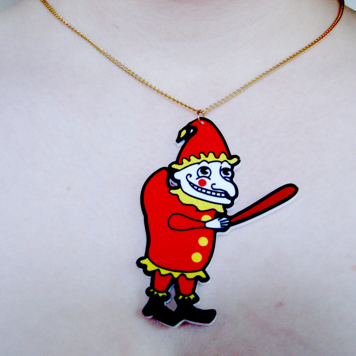 The main man himself. Look at him smiling gleefully, thinking of all the mischief he's going to cause with that slapstick. Shameless!