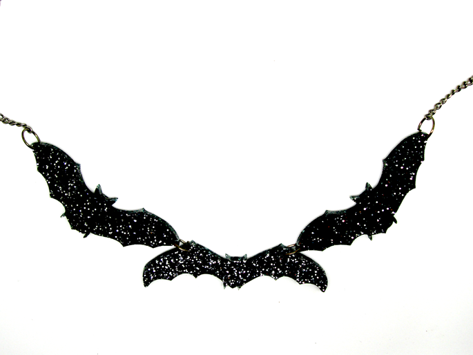 The same design as our best selling Going Batty Necklace, but made from a beautiful black glitter acrylic.