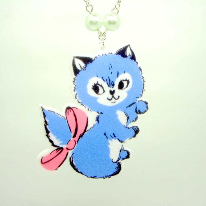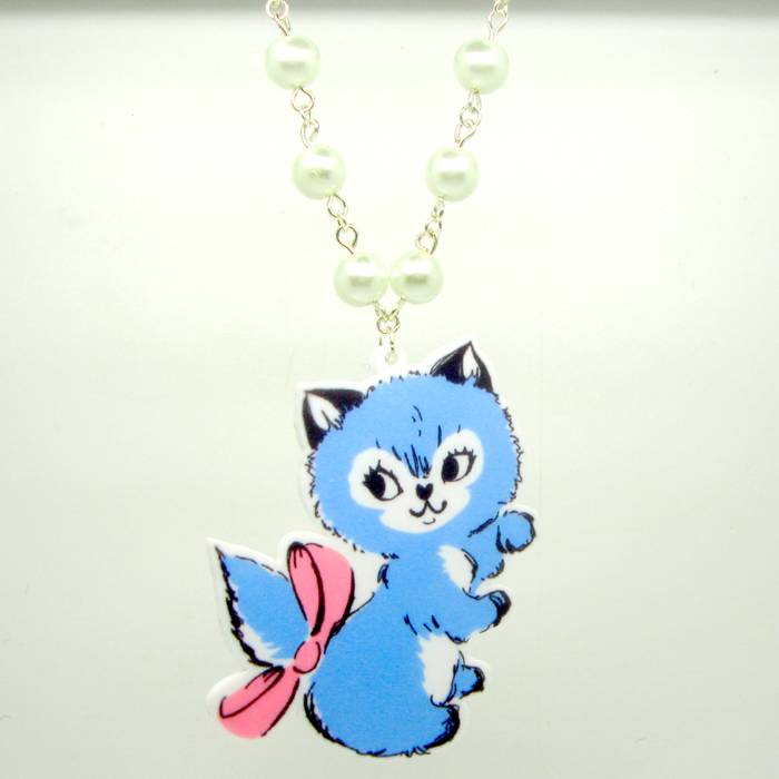 Charm measures 2" by 2.5" and is made from 3mm-thick acrylic. Printed design is scratch resistant and does not wear off. The charm is on a handmade 18 inch long pearl chain with silver findings and a 2 inch extender chain.